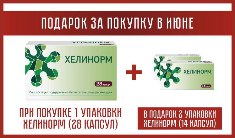 При покупке 1 упаковки хелинорм (28 капсул) - в подарок 2 упаковки хелинорм (14 капсул)